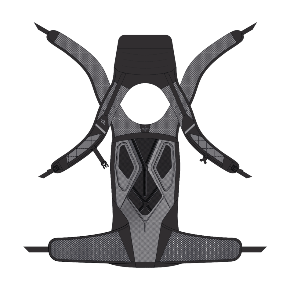 • Maintains the shape of the pack while flexing with the body.